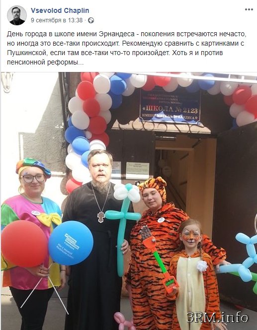 ОНИ ВЫШЛИ ОТ НАС, НО НЕ БЫЛИ НАШИ... "Клоун" в рясе с крестом из шариковИзвестный «борец с экуменизмом» протоиерей Всеволод Чаплин разместил у себя на стене в ФБ своё фото в обществе веселых клоунесс. В руках священник держит Крест, сделанный из шаров для моделирования, что уже само по себе является кощунством, т.к. поставляет Святой Древо в один ряд с клоунскими атрибутами, которые после использования будут просто выброшены в мусорную корзину.