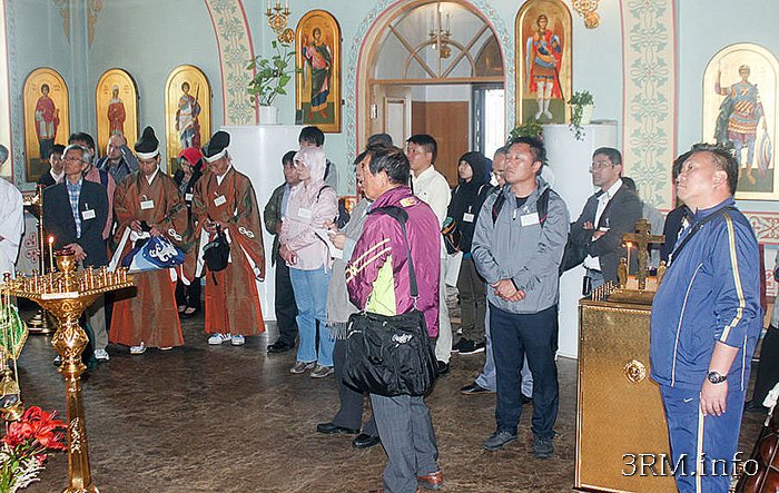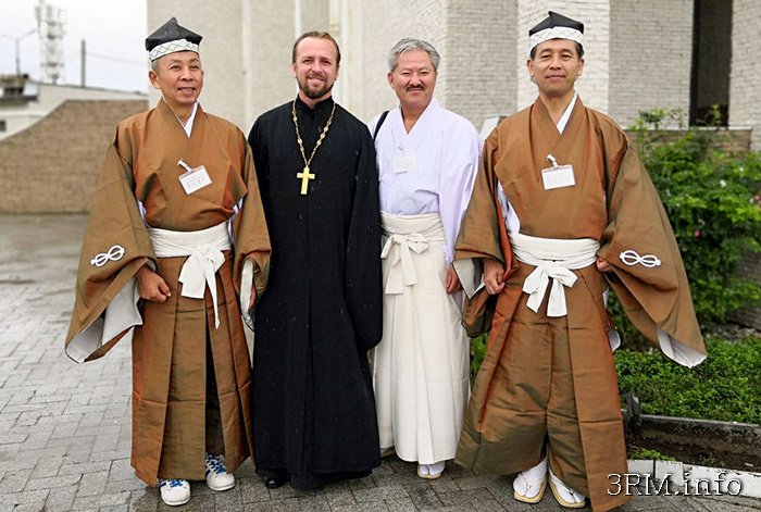 В ХРАМЕ В ШАПКАХ... Японских самураев, как архиереев, встречали колокольным звономПриход Святой Живоначальной Троицы на острове Кунашир принял делегацию гостей из Японской префектуры Яманаси. Настоятель храма иерей Александр Брагин встретил гостей колокольным звоном, сообщает пресс-служба Южно-Сахалинской епархии. Священник рассказал японским синтоистам (синтоизм — главенствующая религия Японии — ред.) о истории храма, о внешнем и внутреннем устройстве храма, колокольне, колокольном звоне, о жизни и трудах святого равноапостольного Николая Японского, икона которого располагается рядом с Господом на иконостасе, подчеркивая, что святитель Николай особо почитается на Сахалинской земле. В конце встречи каждый желающий мог подняться на колокольню и позвонить в колокола. Приход Святой Живоначальной Троицы во главе с настоятелем не только не видит ничего страшного в профанации использования церковного звона и в безразличном отношении к святыне храма, но наоборот, «благодарит курило-японский центр за многолетнее сотрудничество в приеме японских гостей», т.е. возводит данное кощунство в ранг церковной традиции. на фото: японские самураи даже не снимают в храме головные уборы «эбоси», что в переводе означает «птичья шляпа» ![]() ![]()
