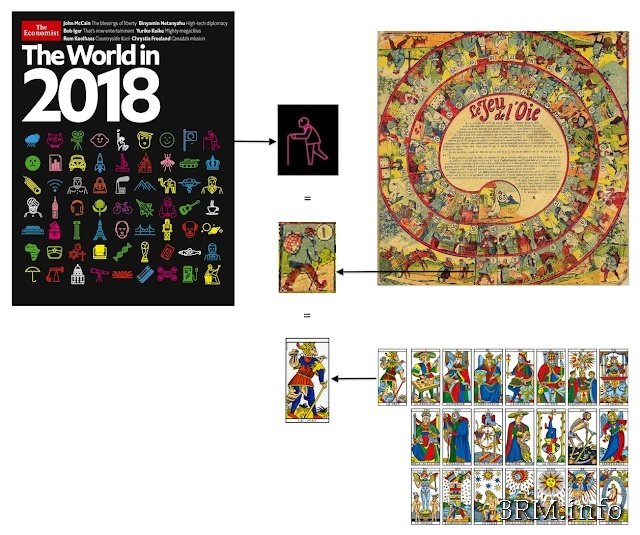 НЕМНОГО КОНСПИРОЛОГИИ... Разгадан календарь The Economist: в октябре 2018-го произойдет первый ядерный взрыв?![]() Британский журнал The Economist, являющийся собственностью одного из членов семьи Ротшильдов, ежегодно выходит с обложкой-ребусом, в которой многие видят зашифрованное пророчество на следующий год. Поэтому, когда мир увидел обложку с подписью 2018 год, все многочисленные эксперты и “эксперды” ринулись эту обложку разгадывать: ![]() Как и во всех предыдущих случаях удача в расшифровке мало кому улыбнулась, однако с 2018-м годом шифр, похоже, оказался довольно простым и ключ к нему оказался найден французскими конспирологами. Ключом к обложке является средневековая французская игра Jeu de l’Oie (Игра в Гуся): ![]() Поле для игры Jeu de l’Oie, символизирующее путь, поделено на 63 клетки, первая из которых обозначена паломником с тростью. В процессе игры бросаются кости, после чего игроки продвигаются от клетки “паломника” в центр, то есть в конец пути. На обложке The Economist тоже 63 символа, и первый символ – это как бы паломник, поэтому трактовать обложку нужно как бы по сворачивающейся спирали. Однако в Таро, где тоже есть карта “паломник”, движение по арканам обратное, по раскручивающейся спирали посвящения. Поэтому французские конспирологи стали пробовать трактовать спираль и так и так, то есть в разных направлениях. И как было установлено опытным путём – разворачивающаяся спираль является правильной трактовкой. ![]() Начинается спираль с картинки, символизирующей чертополох, точнее – эмблему Ордена Чертополоха. ![]() Что такое Орден Чертоплоха? Цитата из Википедии: Древнейший и благороднейший орден Чертополоха (англ. The Most Ancient and Most Noble Order of the Thistle) — рыцарский орден, связанный с Шотландией. История современного ордена начинается в 1687 году с учреждением его королём Яковом VII Шотландским (также известным как король Англии Яков II), при этом утверждалось, что произошло возрождение ранее существовавшего ордена. Орден состоит из Суверена и шестнадцати рыцарей и дам, а также некоторого количества «сверхштатных» рыцарей (членов британской королевской семьи и иностранных монархов). Предоставление членства входит в исключительную компетенцию Суверена (без каких-либо консультаций с правительством, как принято для большинства орденов). Сувереном ордена является Елизавета II. Принц Уильям был принят в рыцари Ордена в 2017 году. ![]() В 2018 году очередная церемония посвящения в орден происходила 6 июля, поэтому французские конспирологи взяли эту неделю за точку отчета, приплюсовывая к ней по 7 дней и пытаясь увязать ключевое событие каждой очередной недели с каждой новой картинкой шарады. И вот что далее получилось: ![]() 1. 6 июля 2018 года, посвящение в Орден Чертополоха новых членов, начало отсчета; 2.Тур де Франс, который прошел по дорогам Франции и Испании с 7 по 29 июля 2018 года. 3.25 июля, официально объявлено о размещении в Европе истребителей 5-го поколения F-22. ![]() 4. 3 августа, Ангела Меркель объявлена прессой лидером свободного мира ![]() 5. 5-19 августа, Всемирная конференция роботов; ![]() 6. 14 августа, обрушение моста в Генуе; ![]() 7.18 августа, саммит Путин-Меркель в Германии; ![]() 8. 28 августа, президент Франции Макрон заявляет, что безопасность Европы теперь не должна больше зависеть от США; ![]() 9. 5-9 сентября, судебные споры вокруг Бретта Кавано, которого Дональд Трам выдвинул кандида