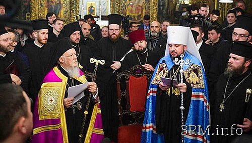 КАТАСТРОФА ПРОИЗОШЛА... Лжепатриарх-раскольник Варфоломей передал главе ПЦУ свиток с Томосом и посохВ Стамбуле состоялась церемония вручения Томоса главе ПЦУ. После торжественной церемонии жидопрезидент Петр Порошенко-Вальцман заявил, что сатанинская украинская церковь создана. 6 января 2019 в соборе Святого Георгия в Стамбуле Константинопольский патриарх Варфоломей вручил «митрополиту Киевскому и всея Украины» Епифанию Томос и митрополичий жезл, передает «Страна». Перед передачей Томоса патриарх Варфоломей зачитал его текст на торжественном богослужении. Глава ПЦУ поблагодарил своего «наставника» Филарета и назвал его «нашим святителем». Также Епифаний заявил, что покойный Предстоятель УПЦ Блаженнейший Митрополит Владимир (Сабодан) «много потрудился, чтобы этот день настал». На торжественной церемонии вручения Томоса присутствовал Президент Украины Петр Порошенко, который в своем выступлении заявил, что независимая украинская церковь создана и полученный Томос «усилит права и свободы граждан, которых несправедливо именовали неканоничными». Как сообщал СПЖ, 5 января 2019 года под звуки колядок и крики «Слава Украине – героям слава!» в стамбульском патриаршем Свято-Георгиевском храме состоялась церемония подписания Томоса. В церемонии участвовала правительственная делегация, в которую вошли Порошенко и спикер Верховной Рады Андрей Парубий. Напомним, Томос выставят в Святой Софии 7 января, однако увидеть его смогут только избранные: вход на территорию собора будет ограничен. Глава Юридического отдела Украинской Православной Церкви протоиерей Александр Бахов считает Томос документом, не имеющим никакого отношения к автокефалии и де-факто создающим в Украине юрисдикцию Константинопольского патриархата.