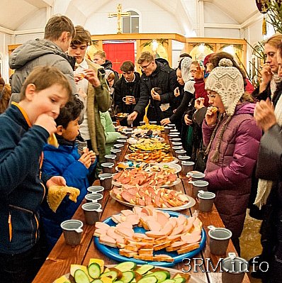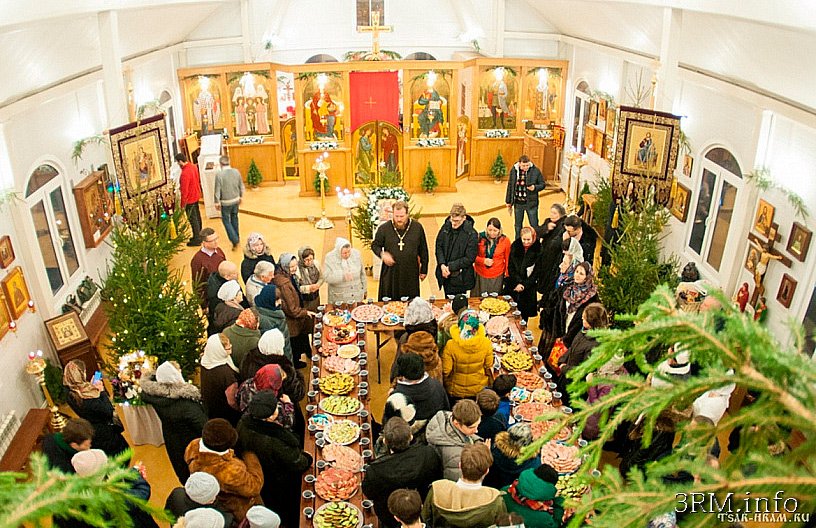 ЗАКОН ИМ НЕ ПИСАН... ХАРЧЕВНЯ В ХРАМЕ. Мясное разговение в московском храме![]() В IV в. Лаодикийский Собор вследствие неумеренного вкушения пищи и вина, криках, многословии, пустом смехе во время совершения агап (так называемых «трапез любви») своим 28-м правилом упразднил их и заодно вообще запретил «в доме Божием ясти». Как и недопустимо приносить в храм мясо, а уж тем более есть его там. Но сегодняшнему апостасийному епископату и священству закон и каноны не писаны...: "Не подобает в храмах Господних или в церквах совершати так именуемые трапезы любви, и в доме Божием ясти, и возлежание творити". Церковный устав, кроме того, запрещает приносить в храм далее церковного притвора продукты питания и особенно мясо: Типиконъ, гл. 50. Во святую и великую неделю Пасхи:«[Смотри] Ведомо же буди и сiе: яко мясъ православнiи христiане къ церкви не приносят, но въ домъ ко iерею. … яйца же и сыръ принесенныя поставляются въ притворе, въ церковь же отнюдь не подобаетъ вносити. … [Смотри] Вестно же буди: яко сицевый мясъ и набелу приносъ, не есть пасха, ниже агнецъ, … но простое приношенiе. Не аки бо сiе въ жертву Богу приноситися имать, но токмо да начинающимъ по посте мясо и сыръ ясти, отъ iереа предложенными молитвами въ снедь благословено будетъ. … И сего ради оныя приносы, яко не суть пасха, во олтарь или въ церковь не достоитъ вносити, но вне церкве, или въ притворе, молитвою благословити, по 3-му правилу святыхъ апостолъ глаголющихъ: Аще кто епископъ или пресвитеръ, кроме вчиненiя Господня о жертве, или иная некая ко олтарю принесетъ, медъ, или млеко, или вместо вина сикеру, сiесть оловину, или медовину, или птицы, или кая животная, или сочива, разве гроздiя въ лете, или елеа на свещники и фимiама, во время литургiи, да извержется. И по 6-му собору, иже въ трулле, въ правиле 99 глаголющу. … Темже церковь непорочную храняще, узаконихомъ, яко не подобаетъ ни единому же iерею различныхъ мясъ частей отъ приносящихъ прiимати: но теми довольни да будутъ, яже приносящему возмнятся. Сицевому приношенiю бываему вне церкве. Аще же кто сего не сотворитъ, да отлучится.» Модернисты из московского храма cвятого царя страстотерпца Николая (что у м. Аннино) под руководством настоятеля о.Тимофея Куропатова попрали все вышеперечисленные правила, устроив после Рождественского богослужения в центральной части храма мясной шведский стол для своих несведущих в канонах прихожан: «7 января в нашем храме были совершены торжественные богослужения: Великое Повечерие, Утреня, ночная Божественная Литургия свт. Василия Великого. ПОСЛЕ СЛУЖБЫ ПРИХОЖАНЕ РАЗГОВЕЛИСЬ ЗА ПРИГОТОВЛЕННЫМ СВОИМИ СИЛАМИ ПРАЗДНИЧНЫМ СТОЛОМ И СПЕЛИ РАДОСТНЫЕ КОЛЯДКИ.» — отчитались авторы приходского сайта.