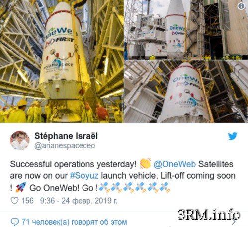 МЕГА-СОЗВЕЗДИЯ ОТ ГЛОБАЛИЗАТОРОВ... OneWeb отправила на орбиту первые спутники для создания всемирного интернетаПрим.Ред. - В связи с этими разработками глобального интернета становится абсолютно ясна безрезультативность инициативы путинского кагала клишасов по "отрезанию" Россию от всемирной сети. Они прекрасно знают и понимают, что не получится это сделать, но выделенные на это дело пару сотен миллиардов просто-напросто украдут. Ради этого всё и делается Путиным в России... Мега-созвездие спутников для всепланетарного интернета должно оперировать на высоте 1200 км над землей. Лондонский стартап под названием OneWeb запустил в космос первые шесть спутников в рамках проекта стоимостью в несколько миллиардов долларов, который призван доставить интернет во все уголки земного шара. Согласно планам, в конечном итоге на орбиту может быть выведено около 2000 спутников. Другие компании также обещают так называемые "мега-созвездия", но OneWeb считает, что она обладает преимуществом первопроходца с уже функционирующей системой.Увы, без участия глобалистов из Роскосмоса не обошлось, хотя ФСБ России давало отрицательное заключение на тему нацбезопасности этого проекта. Запуск ракеты "Союз" из Французской Гвианы состоялся 27 февраля 2019 г. в 18:37 по местному времени (21:37 по Гринвичу). Наиболее важной задачей платформ является обеспечение частот, необходимых для ретрансляции подключений к интернету в будущей всемирной сети... Если эти первые спутники сработают должным образом, OneWeb начнет массовое развертывание остальной части созвездия спутников ближе к концу года. Для этого потребуется еще 20 ракет "Союз", запуски которых будут происходить каждый месяц. Каждая ракета будет выводить на орбиту от 32 до 36 спутников за раз. Чтобы обеспечить глобальное интернет-покрытие, на орбите должно постоянно находиться 648 спутников. "Мы собираемся соединить множество людей, которые в настоящее время не связаны. Мы начнем с того, что сосредоточимся на соединении школ, морских судов, самолетов и на соединении огромных районов планеты, где не имеет смысла прокладывать оптоволокно", - объяснил генеральный директор OneWeb Адриан Штекель в интервью Би-би-си. Кто поддерживает OneWeb? Компания была основана американским предпринимателем в сфере телекоммуникаций Грегом Уайлером. Ранее он основал еще одно созвездие спутников под названием O3b, что означает "другие три миллиарда" - отсылка к половине планеты, у которой нет интернет-связи. O3b состоит из 16 спутников, находящихся на экваториальной орбите на высоте 8000 км. OneWeb - это еще более грандиозное видение Уайлера - гораздо более плотная сеть, которая должна оперировать на высоте 1200 км над Землей. Близость спутников, их высокая пропускная способность - более одного терабита в секунду по всему созвездию - и глобальный охват должны обеспечить доступность интернет-связи для тех, кто в настоящее время недостаточно обслуживается или не обслуживается вообще. По крайней мере, это мнение разделяют партнеры OneWeb, в число которых входят такие компании, как: - производитель микросхем Qualcomm, -6Virgin Group Ричарда Брэнсона, - Coca-Cola, - компания-специалист в области спутниковой связи Hughes и - финансирующий сферу технологий SoftBank. Насколько масштабно это предприятие? Масштабы поражают. Спутниковая технология сейчас уже намного дешевле, чем раньше, и большое 
