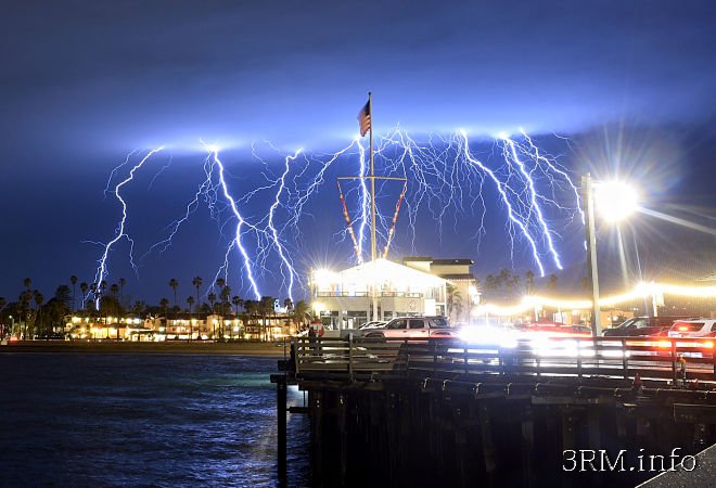 В какой-то момент Национальная метеослужба США зафиксировала 1489 импульсов молнии всего в пяти минутах от калифорнийского побережья, сообщает The Los Angeles Times. Более 20 000 импульсов были зафиксированы Earth Networks с 18:00 до полуночи.