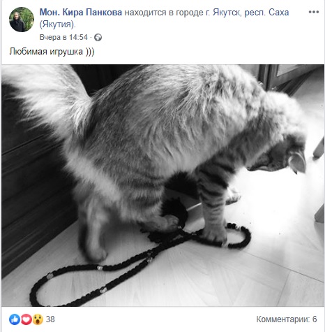АПОСТАСИЙНОЕ МОНАШЕСТВО. Не давайте святыню… котам"Не давайте святыни псам и не бросайте жемчуга вашего перед свиньями, чтобы они не попрали его ногами своими и, обратившись, не растерзали вас". (Мф.6:7). Сотрудница Издательского и Молодежного отделов Якутской епархии монахиня Кира (Панкова) поделилась фотографией своего кота, возящего по полу монашеские четки и попирающего лапами Святые Кресты, разделяющие десятки узелков. В этих же постах указана и внучка раввина - пресс-секретарь Якутской епархии "монахиня" Сенчукова. Своё фото т.н. матушка назвала «Любимая игрушка)))». Судя по комментариям, чётки принадлежат автору фотографии. ![]() ![]() Евгения Мария Сенчукова РУЛИТ СЕМИНАРИСТАМИ И БАТЬКАМИ: ![]() ![]() ПУБЛИКАЦИИ ПО ТЕМЕ: |