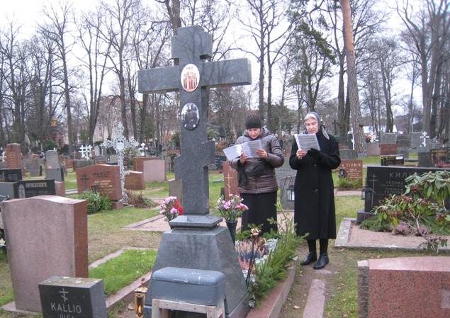 ОСВЯЩЕНИЕ ПАМЯТНИКА ОТЦУ А. А. ТАНЕЕВОЙ, ЕЁ РОДУ В САНКТ-ПЕТЕРБУРГЕ И ПАНИХИДА«Мемориал создан в лучших традициях русского художественного надгробья второй половины XIX века, с высоким качеством обработки камня. Примите мою искреннюю признательность за вклад в сохранения памяти представителей рода Танеевых!». В.Н. Тимофеев. Директор Государственного Музея городской скульптуры. «… Было очень просто и душевно. Священники освятили памятник, отслужили панихиду, все люди пришли с чистым сердцем, молились от души». Марианна Дворецкая. ![]() Цветы преданно служившим Царю и Отечеству ![]() «Мой отец наследовал высокую должность Управляющего Личной Канцелярией Императора от своего отца и уже в третьем поколении управлял Канцелярией в Михайловском Дворце. Он лично общался с Государем и Государыней, бывал с ними на отдыхе. Он был самозабвенно предан Престолу и своему Государю; эту же преданность мы переняли от него, как и он перенял ее от своих предков. Наш отец подчеркивал важность для человека чувства долга и призывал нас во всех случаях жизни следовать голосу своей совести». Из воспоминаний А.А. Танеевой. ![]() ![]() ![]() ![]() ![]() ![]() Священник Владислав Малышев, иеродиакон Феофан Друганов, Илия Легошин, студент магистратуры Академии ![]() ![]() ![]() ![]() ![]() ![]() ![]() ![]() В тот же день Панихида мирским чином и просьба к монахине Марии о здравии всех участников и соучастников мероприятия. Хельсинки, Ильинское кладбище ![]() Монахиня Мария, моли Бога о нас! «После твоей смерти люди придут к тебе на могилку просить помощи, и Бог услышит тех, кто просит Его во имя твое. Ты пострадаешь за тех, кого любишь, но страдания твои откроют тебе врата Райские, и ты увидишь тех, кого ты любила и оплакала на земле». Г. Распутин. «Дорожите молитвами страдалицы монахини Марии. Много пожалеют о своей несправедливости к этой Божией избраннице. Она близка к Богу и Господь её слушает». Иеросхимонах Ефрем, духовный отец Анны Александровны. Историческая справедливость восторжествовала. Сердечно благодарю всех почитателей Анны Александровны Танеевой, её отца и рода, вместе с этим и Отечества! Фото и видео Н. Слепковой. С Любовью о Господе, Людмила Хухтиниеми. Общество памяти святых Царственных Мучеников и Анны Танеевой в Финляндии RY 21-11-2019