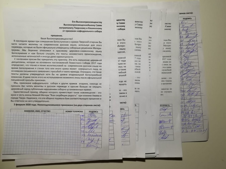 НАРОД ПОДНЯЛСЯ... У кафедрального собора РПЦ МП в Твери прошел митинг против "нашествия кочетковцев". Митрополит Савва покинул город. (ВИДЕО)Прим.Ред. - Дорогие во Христе братья и сестры! Народ в Твери поднялся с возмущением против насаждения гундяевской богомерзкой кочетковщины, которые являются самыми настоящими еретиками. Правящий архиерей Твери в угоду богоотступнику лжп.Кириллу пытается насадить кочетковщину в нашей РПЦ МП, а его священники "подплясывают" и угождают ему, совершая страшный грех повреждения своей паствы. Очень скорбно, конечно, что люди не понимают главного, что в церкви всё зло распространяется именно от этого волка и разорителя Русской Церкви - последователя филокатолика и педераста Ротова - лжп.Кирилла. От него идет вся грязь и муть, в которую всё глубже погружается наша церковь. Имеющий разум, да разумеет! Прошение мирян Тверской епархии РПЦ МП, направленное 2 февраля митрополиту Савве (Михееву) |