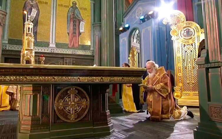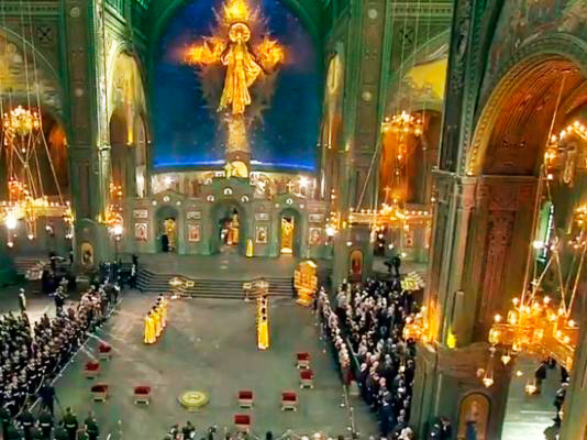 На торжественном богослужении присутствует глава минобороны РФ Сергей Шойгу, а также его заместитель Юнус-Бек Евкуров, начальник Генштаба ВС РФ Валерий Герасимов, ректор МГУ Виктор Садовничий, экс-министр культуры - помощник президента Владимир Мединский и военнослужащие разных родов войск, сообщает «МК».