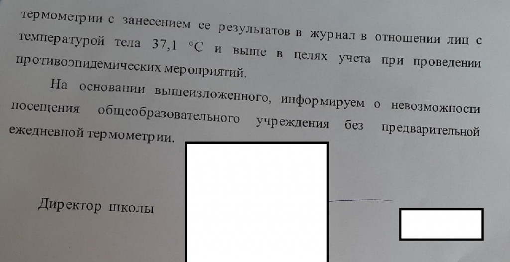 ВОТ ЧТО НУЖНО ДЕЛАТЬ... Руководство школ начало лишать отказников от термометрии права на очное образование![]() Инструкция по противодействию термометрии, навязываемой каждому при входе в российские школы, которую ОУЗС опубликовал накануне, оказалась очень актуальной. Мы начали получать от родителей из разных регионов тревожные сигналы: руководство школ уже готово идти на крайние дискриминационно-карательные меры и лишает права на получение образования (гарантированного Конституцией) детей тех родителей, которые отказываются от этой сомнительной процедуры. Юристы ОУЗС погрузились в тему и пришли к выводу, что доводы чиновников в поддержку термометрии не выдерживают никакой критики, а постановления Роспотребнадзора, на которые они ссылаются, противоречат действующим законам. ![]() ![]() В нашем распоряжении оказался ответ директора одной из региональных школ маме, отказавшейся от медвмешательства в отношении своего несовершеннолетнего сына. В конце разъяснений он информирует родителя о «невозможности посещения (ее ребенком) общеобразовательного учреждения без предварительной ежедневной термометрии» (см. полный текст ответа во вложении). Директор, похоже, искренне считает, что имеет все основания для подобного запрета. Давайте разберем основные лукавые «аргументы» в его исполнении: 1. «Термометрия не является медвмешательством, поскольку в настоящий момент производится в рамках профилактических мер по предотвращению заноса и недопущения распространения новой коронавирусной инфекции в общеобразовательное учреждение». Обращаемся к 323-ФЗ «Об основах охраны здоровья граждан…», где в п.5 ст.2 дается исчерпывающее определения понятию «медицинское вмешательство». Это «выполняемые медицинским работником и иным работником, имеющим право на осуществление медицинской деятельности, по отношению к пациенту, затрагивающие физическое или психическое состояние человека и имеющие ПРОФИЛАКТИЧЕСКУЮ, исследовательскую, диагностическую, лечебную, реабилитационную направленность виды медицинских обследований и (или) медицинских манипуляций, а также искусственное прерывание беременности». Директор и его юридические консультанты ссылаются на то, что в этой же статье в п.6 отдельно расписывается, что такое «профилактика». Совершенно верно – а ниже (в п .7) дается расшифровка определению «диагностика», а еще ниже – определяется «лечение». При этом ВСЕ виды медобследований и манипуляций (в т.ч. имеющие профилактическую, диагностическую, лечебную направленность) являются медицинским вмешательством – это четко сказано в п. 5. То есть споры о том, диагностика это или профилактика, не имеют смысла – законом для них установлены единые правила. Чтобы окончательно снять все вопросы, обратимся к приказу Минздрава РФ от 23 апреля 2012 г. N 390н «Об утверждении Перечня определенных видов медицинских вмешательств, на которые граждане дают информированное добровольное согласие при выборе врача и медицинской организации для получения первичной медико-санитарной помощи». В приложении к нему перечисляются соответствующие виды медвмешательств, и в п.4 мы находим… термометрию. Из этого логически вытекает, что измерение температуры тела человека должно выполняться исключительно медицинским работником или иным работником, имеющим право на осущ