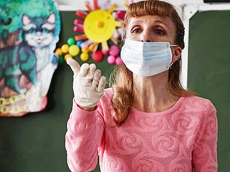 По новым правилам учитель должен находиться на уроке в маске и перчатках: общение с учениками на безопасном расстоянии.