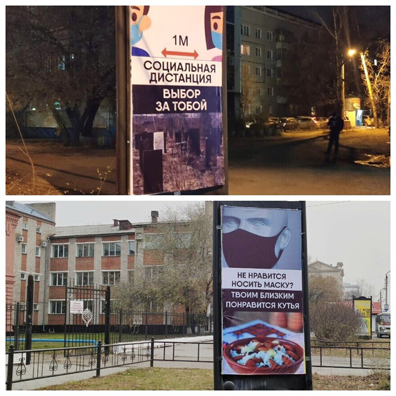 ПСИХИТЕРРОР КРЕМЛЯ, за который нужно судить! (ФОТО)Благовещенск украсили угрожающими плакатами с социальной рекламой, агитирующей носить маски, чтобы не допустить дальнейшее распространение коронавируса. Но, на самом деле, это есть психитерроризм, который провоцирует у людей страх и панику. За это нужно судить! На одном из баннеров изображена кутья — блюдо из риса и изюма, которое традиционно подают на похоронах. Над ней показан человек в маске и подпись: «Не нравится носить маску? Твоим близким понравится кутья». Другой плакат призывает соблюдать социальную дистанцию. В верхней его части изображены два человека в масках на расстоянии 1 метра.