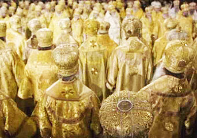 АПОСТАСИЙНЫЕ ЦЕРКОВНИКИ... Утром в газете - вечером в куплете!Прим.Ред. - Дорогие братья и сестры! Апокалипсис совершается. И один из главных признаков последних времен - это духовное падение церковников. Вспомните слова священномученика Гермогена, епископа Тобольского: «Относительно церковной жизни в речах Спасителя указано для нас, как на одно из самых поразительных явлений последних времен, на то, что тогда звезды спадут с небеси (Мф. 24:29). По объяснению Самого Спасителя, “звезды” – это суть Ангелы Церквей, то есть епископы (Откр. 1:20). Падение епископов религиозно-нравственное является, таким образом, одним из самых характерных признаков последних времен. Особенно ужасно падение епископов, когда они отпадают от догматов веры или, как выражается Апостол, когда они хотят превратить Евангелие Христово (Гал. 1:7). Таковым повелевает Апостол изречь “анафему”: Кто будет благовествовать не то, что мы благовествовали, – говорит он, – да будет анафема (Гал. 1:9). И медлить здесь не нужно, продолжает он: Еретика после первого и второго вразумления отвращайся, зная, что таковый развратился, и грешит, осуждая сам себя (Тит 3:10-11). Иначе, то есть за равнодушие к отступлению от истины, тебя может постигнуть суд Божий: поелику ты тепл, а не горяч и не холоден, то изблевати тя от уст Моих имам (Откр. 3:15-16). Тучи на мировом горизонте сгущаются. Приближается суд Божий над народами и лицемерными христианами, начиная с еретических и теплохладных иерархов». Братья и сестры! Минуло всего-навсего два месяца со дня назначения Амвросия в митрополиты Тверские и вот уже его светлый лик украшает фреску подчиненного тверского храма в честь иконы "Всех Скорбящих Радосте". ![]()