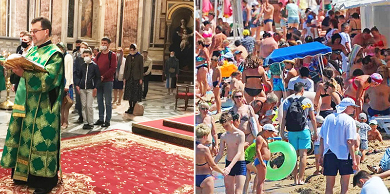 ТАК И ЕСТЬ... Церковники - свободные князья, а народ - безправные рабы в намордниках. Письмо в РедакциюПрим.Ред. - Дорогие во Христе братья и сестры! Мы уже неоднократно затрагивали тему открыто демонстрируемого превосходства церковников над простым народом (см.ниже). Эти господа-князья возвышаются над народом без масок, в то время, как простой народ, видимо, почитаемый клиром безправной чернью, должен послушно душиться в намордниках, натянутых на них антихристовой властью. Поэтому мы считаем, что присланное нам письмо нашей сестры во Христе, абсолютно справедливо. И ведь обратите внимание, что в эту сатанинскую работу по порабощению и погублению народа Божьего активно подключились церковники, насаждающие даже в святых обителям сатанинские порядки и богохульство. Да запретит им Господь! ПИСЬМО В РЕДАКЦИЮ: Христос Воскресе, братия и сестры! Просматривала инстаграм-аккаунт Псково-Печерского монастыря, и взгляд сразу же упал на одно из последних фото там, как же оно лукаво по сути: Такими фото и продвигают окно Овертона в сторону принятия ношения "маски" как нормы в этом "дивном новом мире" царства ковида... Под фото также "благочестивый текст": вырванная цитата из какого то письма И.Крестьянкина, обьясняющая, что " и болезнь и лекарства - все от Бога, все надо принимать со смирением и подчиняться врачам(!)" - что как бы подводит к мысли, что сейчас всем надо "подчиниться врачам" и принять все предлагаемые прививки и т.д. и т.п.И еще одно обстоятельство на этом фото, сразу бросающееся в глаза: священник, как "белый человек" - без всякой маски/тряпки на лице, а вот мирянин перед ним (то ли ребенок, то ли девушка - которые, что примечательно (об этом далее) ниже его по росту) - замотан в какой то неряшливый платок и пол лица закрывает также тряпка - " медицинская маска". На мой взгляд, это очень удачное фото, символически показывающее положение священника и мирянина в сегодняшней РПЦ: первый как бы возвышается над вторым, лицо его не замотано никаким тряпьем, рот и нос открыт (то есть он может и говорить и дышать свободно); у второго же человека (мирянина), стоящего прямо напротив него - пол лица закрыто "маской", он не может ничего говорить, да и дышит то с трудом - символически это значит то, что мнение мирян в нынешней РПЦ руководство РПЦ не интересует. Ну и главный вопрос к этому фото - уже не символический, а по существу (касающийся происходящей "эпидемии"): почему на священнослужителе нет маски, тогда как она есть на мирянине? А ведь это очень распространенная ныне ситуация: весь клир служит почему то без масок (видимо как "белые люди", "господа"), а окружающие их на этой же службе миряне - обязаны стоять в масках... Ответов у руководства РПЦ нет. «МАСКА – ИНСТРУМЕНТ ДЬЯВОЛА, ЕЙ НЕ МЕСТО В ХРАМЕ»... Греческий митрополит Амвросий. А в РПЦ МП все епископы молчат! Иерархи Элладской Православной Церкви бывший митрополит Калавритский и Эгиалийский Амвросий (Ленис) и митрополит Кифирский и Антикифирский Серафим (Стергиулис) высказались против ношения медицинских масок в храме во время богослужения. В интернет-издании Vima Orthodoxias сообщили, что митрополит Серафим написал письмо премьер-министру Греции Кириакосу Мицотакису, в котором потребовал «оставить Церковь свободной».«Позвольте государству с вашей бдительной заботой принять меры, введенные во всех других обществе