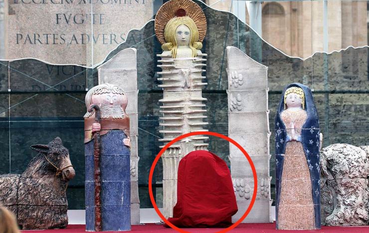 ПУТИН С ТРЕМЯ ШЕСТЕРКАМИ В ПАРКЕ ПОКОРИТЕЛЕЙ... Слуги антихриста уже открыто показывают свою сущность. (ФОТО)Прим.Ред. - Дорогие братья и сестры! 12 апреля 2021 года в Энгельском районе Саратова на месте предполагаемого приземления капсулы, доставившей Гагарина на Землю, открылся монумент и Парк покорителей космоса им. Ю. Гагарина. На этом мероприятии присутствовал сам Путин. ![]() Не обращая внимания на потраченный народный миллиард рублей, сразу обратим внимание на главное - на огромные три шестерки, а в центре между ними красную капсулу. ![]() Три скамейки в виде трех шестерок. Тут не надо долго гадать - что это такое. Все очень открыто, выставлено на показ. Зачем? Для демонстрации кремлевскими оккупантами мировому правительству и антихристу своей полной приверженности их сатанинским ценностям и целям по порабощению всего человечества и погублению его. А с космосом связаны надежды сатанистов на власть. Ведь именно оттуда они ожидают прихода (прилета?) своего возлюбленного антихриста. Вообще, тема космоса в связи с грядущим религиозно-политическим переустройством вышла сегодня на первый план. Американцы через несколько недель (25 июня сего года) обещают рассекретить материалы по связям правительства с инопланетными цивилизациями. Израильский генерал Хаим Эшед в открытую заявляет крупнейшему информационному агенству, что земляне контактируют с инопланетянами из «Галактической федерации». Путинцы вот тоже - спешат побрызгать святой водой три шестерки. Но, если честно, наши все-таки отстали в этом отношении и от Европы, где в церемонии открытия Готтардского тоннеля (на котором присутствовали в обязательном порядке все лидеры Европы) практически открытым текстом раскрывалась "большая космическая программа", которая заканчивается приходом козлообразного антихриста и превращением землян в гибридных уродов. Отстают кремлевцы немного и от американцев, которые в порыве страстной демократии решили рассказать все, что знают об инопланетянах. Отстают от израильтян, которые по признанию генерала (который руководил запуском многочисленных израильских спутников в космос) давно ведут шуры-муры с инопланетными представителями Галактической федерации. Но впереди планеты всей идет не Европа, не Америка, не Израиль, не вечно догоняющая кого-то Россия, а... Ватикан. Наступление этого года, года 2021, Ватикан отметил очень своеобразным жестом. Во-первых, Папа Римский заявил во всеуслышание, что он намерен крестить инопланетян. А во-вторых, традиционная Рождественская елка в Ватикане, на которой, по традиции, должны присутствовать Мария, Иосиф, Иисус, пастухи, волхвы, ангелы, ну и всякие ослики и овечки (приведу вначале иллюстрацию традиционного Рождества) - оказалась более, чем не традиционной. Так Рождество в Ватикане выглядело прежде. На следующих фото мы посмотрим, что сделали на том же месте на этот раз. ![]() А вот так сейчас! Ватиканское Рождество 2020: ![]() Ватиканское рождество в этом году было, как бы это лучше сказать... космическим. Прямо как в путинском Парке покорителей. Вот несколько фото с католического Рождества 2021 - воистину космического рождества. Глядя на эти фото, приходится постараться, чтобы понять - кто есть кто на них. И еще - чего там не хватает. Чего-то очень важного. Или Кого-то... ![]() Самыми "нормальными" на этой Рождественской ватикан