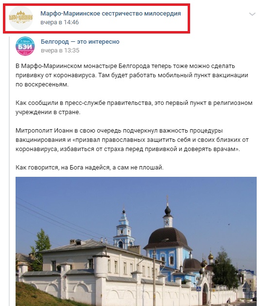 ЕЩЕ И ЕЩЕ РАЗ... Осторожно! Монастырь… Слуги дьявола в РПЦ МП. На Украине не лучше.Пункт вакцинации от коронавируса открыли на территории Марфо-Мариинского женского монастыря в Белгородской области, говорится на сайте губернатора и правительства региона. Он стал первым в России прививочным пунктом на базе монастыря. «Белгородцы могут записаться на прививку и провакцинироваться на территории Марфо-Мариинского монастыря, где по воскресным дням разворачивается мобильный пункт вакцинации от коронавируса», — говорится в сообщении. Его работу благословил митрополит Белгородский и Старооскольский Иоанн. Глава Белгородской митрополии подчеркнул важность вакцинирования от коронавируса. Накануне дня православной Пасхи он призвал верующих не бояться прививки, довериться врачам и обезопасить себя и окружающих от этой инфекции. «Когда мы приходим к врачам, и они выписывают нам рецепт от наших болезней, то почему мы не доверяем, когда они призывают нас прививаться?» — сказал митрополит. Зеленский призвал Церкви рассказывать верующим о важности COVID-вакцинации Верующие должны знать, что вакцинация от коронавируса – единственный путь к преодолению пандемии, считает Зеленский. Зеленский призвал УПЦ, ПЦУ и УГКЦ рассказать своим верующим о важности вакцинации от COVID-19. Об этом он сказал 28 апреля на встрече с религиозными лидерами, в которой принял участие Предстоятель УПЦ Блаженнейший Митрополит Онуфрий, сообщает сайт Президента Украины. Вакцинация – это единственный путь к преодолению пандемии, отметил Зеленский, «поэтому для нас также важно, чтобы люди, которые приходят в ваши церкви за помощью, слышали о важности вакцинации». «На встрече Президенту сообщили, что Всеукраинский Совет Церквей и религиозных организаций пришел к общей позиции относительно вакцинации, – говорится в сообщении пресс-службы Президента Украины. – Она заключается в том, что нет религиозных причин не проводить вакцинацию, а вакцинация должна быть безопасной, доступной и добровольной». Прим.Ред. - Дорогие во Христе братья и сестры! Вот так в лице священноначалия УПЦ МП, т.е. РПЦ МП, вошла в соглашательство с антихристом. Лжмитр.Онуфрия (Березовского) Киевского, как и лжм.Кирилла с его иларионами нисколько не смутил тот неоспоримый факт, что в антиковидных вакцинах содержатся компоненты убитых абортами младенцев. Эти враги Христа пошли даже против собственно утвержденной социальной концепции РПЦ МП, которая категорически запрещает использование фетальной терапии для православных. Мало того, что они пошли на соглашательство с богоборческой властью, так они еще устраивают пункты вакцинации в храмах и монастырях. Да запретит им Господь!