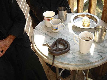 КАК СТАТЬ ЧЕЛОВЕКОМ... Святой Паисий Святогорец и змея. Уникальное фотоОднажды старца спросили: - А как умягчить сердце? - Чтобы умягчить своё сердце, нужно ставить себя на место не только других людей, но и животных, и даже змей. Подумаем, например, так: "Хорошо было бы мне, если бы я был змеёй: выползаю я на солнышко погреться, а ко мне бежит человек с палкой и бьёт меня по голове? Нет, не хорошо".Если будем так думать, то станем жалеть и любить даже змей. Если человек не будет ставить себя на место других людей, и не только людей, но даже животных и насекомых, то не сможет стать человеком. — Когда любишь животных, — сказал отец Паисий, — они это чувствуют и смотрят на тебя как на друга. Когда Адам и Ева жили в раю, животные были их любимыми друзьями. Адам помогал животным, а они слушались его. Но после грехопадения, когда человек не исполнил заповеди Божией, животные одичали, перестали покоряться человеку и стали нападать друг на друга. Но и сейчас, если человек слушается Бога, животные не боятся его и во всём подчиняются ему. Расскажу вам один случай. Жил старец в одиноко стоящей каливке. Время от времени ему приносили пищу. А он целыми днями молился и трудился. Это был очень простой и добрый старец. Там, где он жил, водилось множество змей. Они не боялись старца, подползали к нему очень близко и мешали ему работать. Тогда старец хватал их и выбрасывал вон. Но одна змея все время пыталась к нему приблизиться и так докучала, что старец, рассердившись, схватил её, обернул вокруг пояса и завязал узлом. А потом продолжил свою работу. В это время к старцу пришёл монах, приносивший ему пищу. Увидев змею, которой был опоясан старец, словно поясом, он ужаснулся и закричал: — Убери эту змею! А простой старец сказал: — Не бойся! Ведь Христос сказал: «Вот, даю вам власть наступать на змей и на скорпионов, и на всю силу вражию, и ничто не повредит вам!» Эти слова Господа Иисуса Христа вы и сами можете прочитать в Евангелии от Луки...