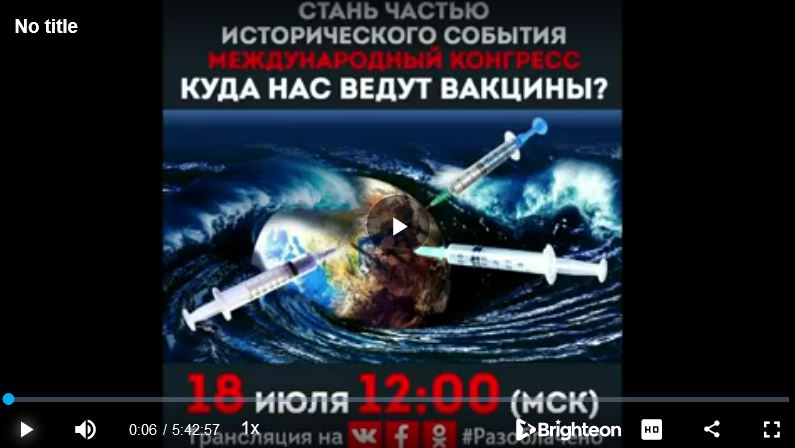 ПРЕДЛАГАЕМ ОЗНАКОМИТЬСЯ... 18 июля, состоялся онлайн - конгресс «Куда нас ведут вакцины?» (ВИДЕО)Прим.Ред. - Дорогие братья и сестры! На данном собрании были всесторонне рассмотрены и проанализированы все аспекты преступления против человечества - вакцинации от ковида. В работе Конгресса приняли участие российские и иностранные специалисты, юристы, правозащитники, ученые, представители Независимой Ассоциации Врачей. Видео - запись (6 часов) ? смотреть онлайн или скачать можно ЗДЕСЬ