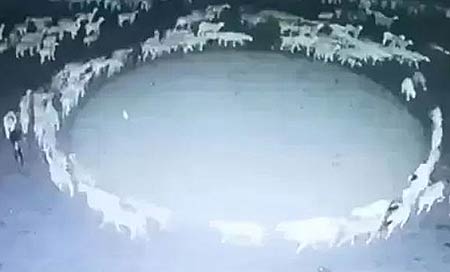 Странное поведение, запечатленное на видео с камер наблюдения, показывает, что большое стадо постоянно марширует по часовой стрелке, описывая почти идеальный круг.