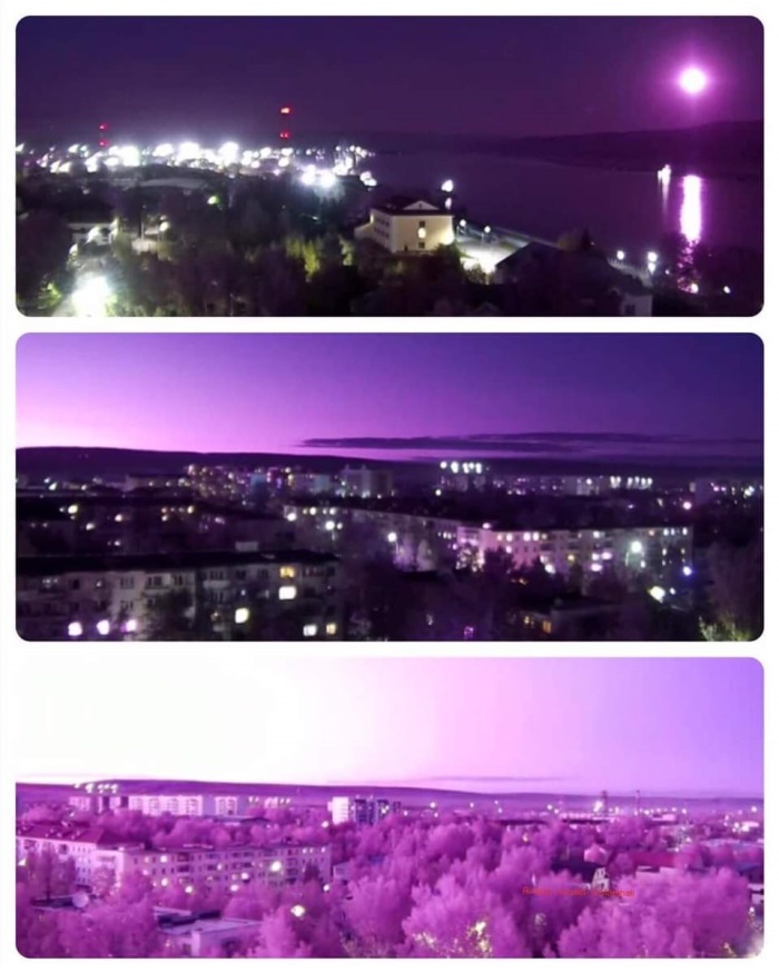 АПОКАЛИПТИЧЕСКИЕ ФЕНОМЕНЫ... В небе стало очень много всего фиолетового. (ВИДЕО)Еще несколько лет назад одной из тем, которую с энтузиазмом обсуждали и конспирологи, и таблоиды – то есть как бы полуофициалы, которые позволяют себе чуть-чуть отходить от парадигм официо – были странные фиолетовые подстветки неба посреди ночи. Сегодня появилось гораздо более важных тем, чем огоньки в небе, а между тем феномен нарастает и в Канаде уже даже солнце с розоватым оттенком: ![]() Как объяснили официалы, это связано с пожарами на Западе – частицы сажи создают такой эффект. Но понятно, что это полная чушь, т.к. пожары на земле были всегда, но не было при этом фиолетового неба. ![]() Но что странно, в Японии с августа 2023-го года по утрам то же самое:
