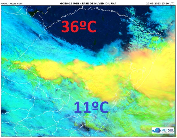 АПОКАЛИПТИЧЕСКИЕ ПОТРЯСЕНИЯ... Погодный феномен в Бразилии показывает, что будет с миром. (ВИДЕО)Одним из новых и странных природных явлений последнего времени вот уже несколько лет являются грады посреди лета, ураганы и наводнения, которые движение воздушных масс не предвещало. Причину происходящего климатологи или не знают, или знают, но не называют. Всем думающим людям все понятно и без рассказов официалов, поэтому они думают о другом, а именно: а что же будет дальше и как скоро? Любопытный скрин, сделанный с метеорологического сайта в Бразилии в конце сентября дает мощный ответ на этот вопрос: ![]() Для жителей Европы, да и вообще любых стран, коме Бразилии, на снимке отражена абракадабра – то есть непонятнот что, показывающее район неизвестно где. Но бразильцы в этих контурах видят свой славный штат Риу-Гранди-ду-Сул, который довольно большой. И реперными точками снимка являются города Санта-Розе и Эрвале. На снимке синоптиков они не показаны, но они именно там и есть: ![]() Санта-Розе находится на севере, чуть поближе к экватору, город Эрвале на юге. Дистанция между городами по прямой 80 километров. И при этом в Санта-Розе солнечно, температура 36 градусов по Цельсию, а в Эрвале 11 градусов, люди достают из шкафов унты и пуховики. Более того. Санта-Розе и Эрвале – это просто известные географические точки, удобная привязка к фото со спутника, который линия между городами пересекает по диагонали. Расстояние между городами по широте составляет всего 50 километров, а вообще демаркационная линия между 36 градусов и 11 градусов всего километров 30 или даже 25. То есть один километр – минус один градус. В истории планета Земля такого не бывало – даже если бегать с термометром по Гималаям, где на короткой дистанции огромные перепады в высоте и, как следствие, в температуре. А тут равнина – и такие дикие перепады, на границе которых такое творится: