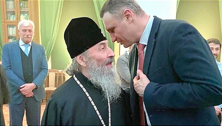 Глава УПЦ МП лжемитр.Онуфрий, угождая жидовской власти, в нарушение целого ряда церковных канонов и правил, ежегодно открыто и публично молился с еретиками, раскольниками и даже с жидами. Причем, молился о мире на Украине.