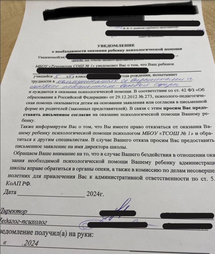 ВМЕСТО УЧИТЕЛЕЙ - ПСИХОЛОГИ-НАДЗИРАТЕЛИ... Профессор Денис Иванов. (ВИДЕО)Пока монтировалось видео, мама одной из школ в Московской области получила от директора такой документ (см.ниже). Он наглядно демонстрирует то, о чем говорится в этом видео. Только если сегодня у нас еще есть возможность его опротестовать, то с принятием этого ПФЗ все будет узаконено. Обратите внимание, что основания для направления к психологу непонятны и не аргументированы, требуют написать отказ и заявление директору, и грозят опекой, если не будет выполнено. Обязательно смотрим видео и действуем! (просмотреть и прокомментировать на Бастионе и в Телеграме)