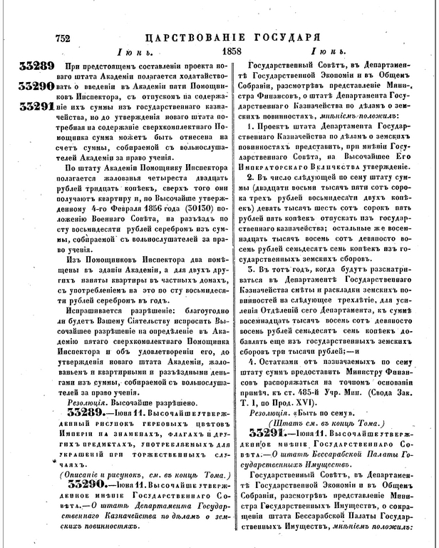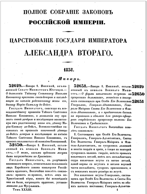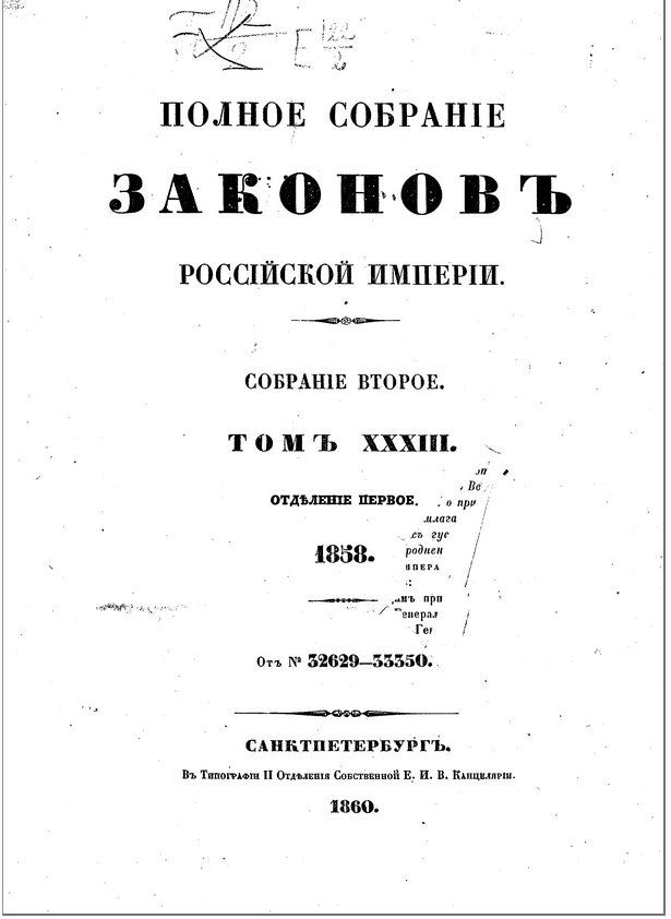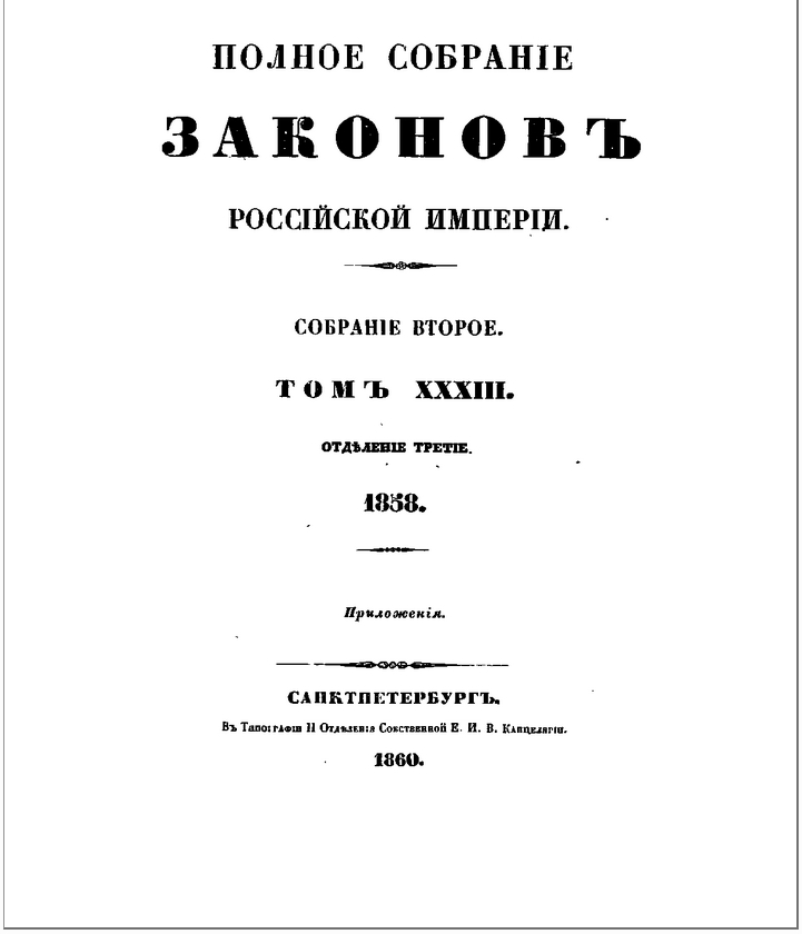 «Полное собрание Законов Российской Империи. Царствование Государя Императора Александра Второго» (Том XXXIII, отделение первое, 1858 год, стр. 752)