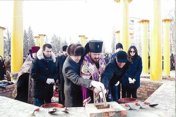 Фото: Рука архиепископа Онуфрия при опускании капсулы зажата сверху и снизу двумя руками в белых перчатках (так посвящают у масонов): мэра Харькова Геннадия Кернеса и ктитора строительства Павла Фукса. Кроме того, на фото - шесть мастерков – символ масонов – «вольных каменщиков». Православный священник и две схимонахини сказали, что это готовится Престол для антихриста, еще один священник сказал женщине, показавшей ему эту фотографию: «Конечно, это церковь – для бесов, туда ходить нельзя. Так и проповедуй, так и проповедуй: туда ходить нельзя» /3/. БЛАГОДАТЬ ПОЛНОСТЬЮ ОТХОДИТ И ЧЕЛОВЕК ОКОНЧАТЕЛЬНО ОТРЕКАЕТСЯ ОТ ХРИСТА С ПРИНЯТИЕМ ПЕЧАТИ АНТИХРИСТА (в Украине печать антихриста - это УНЗР /6/, /9/)