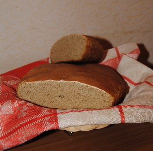 В емкости для замеса теста смешать воду, соль, закваску, отруби и 1/2 часть муки. Замесить опару и поставить в теплое место подходить на 4-6 часов. Опара готова, когда масса увеличится в объеме в 1,5 - 2 раза. В готовую опару добавляют оставшуюся часть муки и хорошо вымешивают полученное тесто. Затем делят тесто на 3 части, кладут в смазанные маслом формы и оставляют подходить на 2-4 часа. Когда хлеб поднимется до краев формы, верх булки можно смазать маслом и выпекать. Длительность и температура выпекания обуславливается особенностями духовки, обычно это 35-50 минут при 200°С. Когда хлеб испечется, его достают из формы, заворачивают в ткань и сбрызгивают водой. Хлеб ржаной кисло-сладкий «Утром заварить ржаную муку кипятком так, чтобы в тесте этом могла стоять палка; выбить как можно лучше, до тех пор, пока тесто не будет приставать к скалке, прикрыть полотенцем и поставить в теплое место; вечером подбить мукой и хорошо вымесить; на другое утро опять вымесить, прибавить закваски и оставить до вечера; вечером опять вымесить и прибавить горсть цукатов; на третье утро наделать хлебы и печь, смазывая каждый хлеб горячей водой и растирая ровно рукой; кто любит - можно посыпать семенами аниса, тмина или укропа.