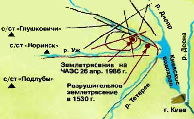 В год десятилетия аварии появилась версия, выдвинутая сотрудником Института физики Земли РАН Евгением Васильевичем Барковским. Эта версия была опубликована в №12 журнала "Техника – Молодёжи" за 1996 год. По мнению Барковского, причиной аварии могло стать небольшое землетрясение, зафиксированное сейсмографами сейсмических станций Норинск, Глушковичи и Подлубы как раз за 22 секунды до взрыва. Кстати говоря, землетрясения случались в этом районе и чаще. Чернобыль был городом ещё во времена Киевской Руси – первое упоминание о Чернобыле относится к 1193 году. Однако вскоре после татарского нашествия город оказался в составе Литвы, а потом и Польши и лишь после второго раздела Речи Посполитой в 1793 году Чернобыль был вновь возвращен в состав России. В те времена Чернобыль был типичным еврейским местечком и даже стал одним из центров хасидизма. По переписи 1765 г. в Чернобыль состоял из 96 еврейских домов, в которых жило 696 евреев. Несмотря на то, что город в 1919 году побывал в руках петлюровского атамана Ильи Струка, а во время Великой Отечественной дважды побывал в оккупации, к моменту аварии в нём всё ещё проживало 150 еврейских семей.