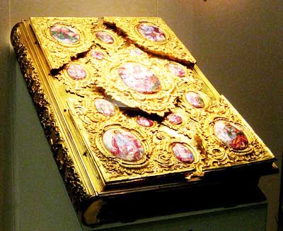Развенчивающихся поставил под амвоном (это такая полукруглая ступенька напротив царских врат в храме), отверз царские врата, взял в руки напрестольное Евангелие (оно обычно заковано в железный чеканный оклад и весит "ни много, ни мало" килограммчиков 16-ть) и, подойдя к жениху торжественно спросил его: