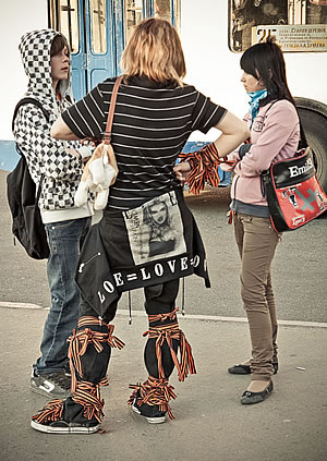 Нам не раз приходилось лицезреть Георгиевские ленты на обочинах дорог, в лужах, в грязном месиве снега. Их срывает с автомобилей участников акции и Георгиевские биколоры в буквальном смысле слова превращаются в мусор, они валяются среди окурков и грязи. Данный факт ничем не отличается от банального осквернения символов истории и памяти павших. Мы замечаем, как прибалтийские страны переносят советские памятники, но не замечаем, как у нас дома традиционные символы военной доблести теряют свой первоначальный смысл и моральную ценность в глазах социума.Сколько раз мы видели Георгиевские ленты на пьяных людях, на людях, совершенно не понимающих, что и зачем они на себя нацепили: