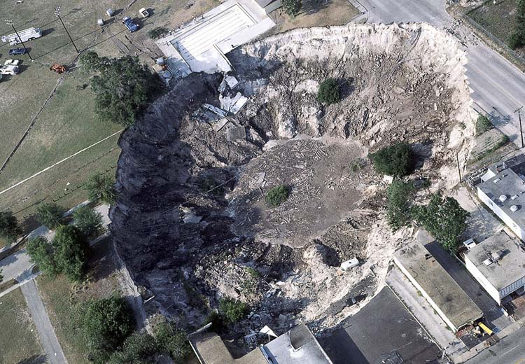 6. Штат Флорида, 11 мая 1981 года. Этот провал поглотил несколько автомобилей, домов и часть городского бассейна. (Фото AP Photo):