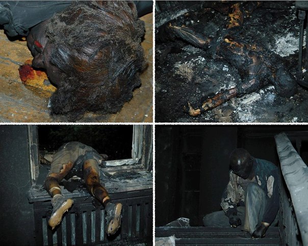 Это сделали майдауны, бандеровцы, правый сектор и руководство города Одесса. Они кидали коктейли Молотова в здания Дома профсоюзов. Это малолетние мрази разливали бензин и подавали бутылки. Это сделала хунта! Смотрите и спите, если сможете! ЖЕРТВЫ ФАШИСТСКИХ ИЗУВЕРОВ: