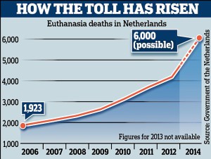 Количество смертей от эвтаназии в Нидерландах. Гарфик с сайта www.dailymail.co.uk