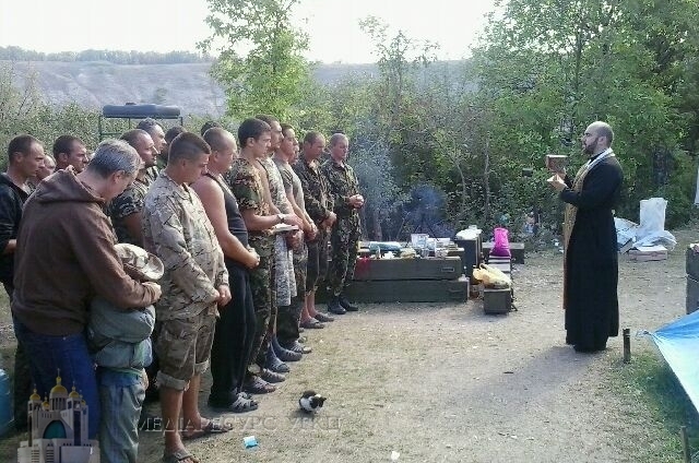 Капеллан УГКЦ Максим Кролевский благословляет карателей — воинов АТО — окатоличенных украинцев на геноцид православного населения Востока.