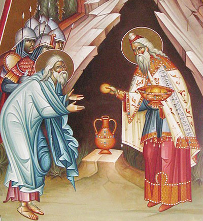 Святой прав. Мелхиседек - Царь Салима и священник Бога Всевышнего (Быт. 14:17-20; Евр. 7:1-2) историческая личность, в его таинственном священстве по особому чину в соединении с Царским достоинством, мы видим прообраз Господа нашего Iисуса Христа. Образ земного Царя-Священника Мелхиседека послужил св. Ап. Павлу и св. Пророку и Царю Давиду в раскрытии Первосвященнического служения Спасителя (Евр. 5, 6, 7 главы; Пс. 109:4). Образ Царя-Священника Мелхиседека укрепляет нашу веру в Богооткровенную истину, что наш грядущий Государь может быть Царём и Патриархом в одном лице.