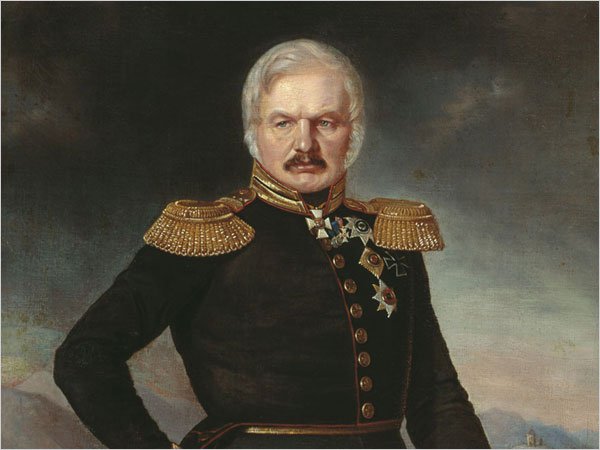 Битвы за КавказС 1816 г. Ермолов — командир Отдельного Грузинского корпуса, управляющий гражданской частью в Грузии, Астраханской и Кавказской губерниях, чрезвычайный посол в Персии. В кампании 1818 г. руководил постройкой крепости Грозная. В его подчинении находились войска, посланные для усмирения аварского хана. В 1819 г. Ермолов приступил к возведению новой крепости - Внезапная. В 1823 г. командовал боевыми действиями в Дагестане, а в 1825 г. воевал с чеченцами.С 1827 года в отставке. С 1831 года член Госсовета, с 1832 года член Российской академии. С началом Крымской войны был избран начальником государственного ополчения в семи губерниях, но принял эту должность только по Москве.В мае 1855 покинул этот пост. Генерал скончался в Москве 23 апреля (11 апреля ст. ст.) 1861. У умирающего генерала было всего два желания: он завещал похоронить себя рядом с могилой отца в Орле и чтоб похороны были «как можно проще», без помпезности, скромные. Москва провожала генерала двое суток, а жители Орла по прибытии тела на Родину устроили ему грандиозную панихиду. Площадь перед Троицкой церковью, где шло отпевание Ермолова, и все прилегающие улицы были заполонены людьми. В Санкт-Петербурге, на Невском проспекте, во всех магазинах были выставлены его портреты. Память Портрет Ермолова, стоящего на фоне кавказских гор, несомненно принадлежит к лучшим работам Джорджа Доу. Отказавшись в нем от изображения блестящего мундирного шитья и орденов, художник сосредоточил все внимание на характерном волевом лице генерала. Глядя на этот профиль, каждый вспомнит строки Пушкина, написанные в 1829 году после знакомства с Ермоловым: «Лицо круглое, огненные серые глаза, седые волосы дыбом. Голова тигра на геркулесовом торсе... Когда он задумывается и хмурится, то становится прекрасен и разительно напоминает поэтический портрет, писанный Довом». Правый придел орловской Свято-Троицкой церкви – фамильная усыпальница Ермоловых. Сооружен 15 октября 1867г. на средства, выделенные императором Александром II в память великих заслуг генерала от артиллерии Алексея Петровича Ермолова. Рядом с ним покоятся его отец Петр Алексеевич (1748-1832), сын генерал-майор Клавдий Алексеевич (1821-1894) и невестка Варвара Николаевна (1825-1897). Памятник в Грозном. В начале 20-го века в Грозном сохранялась землянка, в которой жил Ермолов при закладке крепости Грозная. В 1880-ых годах у землянки был сооружен скромный памятник Ермолову - бронзовый бюст на высоком четырехгранном каменном постаменте. Бюст был подарен главнокомандующим на Кавказе А.М. Дондуковым-Корсаковым. Землянку окружала решетка, вход в ограду был оформлен в виде каменной плиты, увенчанной крепостными зубцами. На железной двери помещалась надпись: «Здесь жил Алексей Петрович Ермолов». Памятник был уничтожен после революции 1917 года. В 1962 году именем генерала названа улица в Москве (улица Генерала Ермолова). В 2008 в городе Минеральные Воды Ставропольского края по решению Городской Думы в сквере «Надежда», переименованном в сквер Ермолова, установлен памятник «Главнокомандующему на Кавказе, Генералу А. П. Ермолову». В Орле, где похоронен Ермолов, в 1911 году по решению городской думы именем А.П. Ермолова была названа улица, ведущая от городского парка к его могиле, а также было объявлено о сборе средств на установку памятника генералу. Деньги на памятник собрали и 