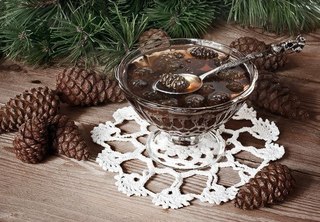 Способы приготовления варенья из сосновых шишек Перебираем собранные шишки сосны, удаляем с них мусор и прилипшую хвою. Промываем водой, засыпаем в тазик, в котором будем их варить (в эмалированный!), заливаем холодной водой, чтобы она покрыла полностью шишки. Доводим воду с шишками до кипения, добавляем сахара (на каждый литр налитой вами воды один кг сахара, потому когда будете заливать шишки водой, измеряйте, сколько воды налили). Варим на медленном огне полтора часа, снимая пенку. Шишки в варенье будут по окончании варки розоватого цвета и полностью по мере остывания пропитаются сиропом. Варенье также закатывается в банки, как и другие виды варенья. Хранить его нужно в погребе или в холодильнике. А это вариант приготовления варенья из шишек способом без варки. Так их полезные качества сохраняются в полном объеме. Шишки подготовьте также, как и в рецепте выше. Теперь разрежьте их на части и обваляйте их в сахаре. В мелком виде шишечки скорее пустят сок. Теперь укладываем шишки по банкам, пересыпая каждый их слой сахаром. Верхний слой засыпаем также сахаром, закрываем баночки марлей, ставим в тепло и чтобы в этом месте было темно. Встряхивайте банки, чтобы сахар с соком от шишек в них как можно скорее растворился. Когда сахар в банках растворится, их закрывают пластиковыми крышками и переставляют в прохладное место или в холодильник. Рекомендуется применять сосновое варенье для профилактики заболеваний по небольшой ложке по утрам, запивая водой. Можно растворять его в чае или стакане воды. Для лечения варенье можно есть небольшими порциями, запивая их горячим чаем. Еще лучше добавить ложку варенья в кипяток и пить небольшими глотками. |