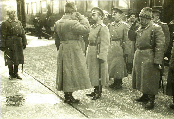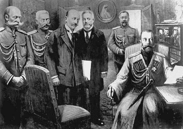 ИЗМЕНА И ПРЕДАТЕЛЬСТВО ЦАРЯ... Людмила Хухтиниеми![]() Император Николай II в Ставке. Могилев В марте 1917 года, во время революционного переворота в России, произошла смена власти. Масоны мировых сообществ добились желаемого результата – Царь оставил Трон. Это удалось через десятилетия планируемых ими условий доведения до крайнего обострения внутренних противоречий в Российской Империи, ослабления доверия к власти, при финансовой поддержке революционных сил. Государь Николай Александрович из Ставки Главнокомандующего в Могилёве отправился в Царское Село – в столице было восстание, Цесаревич и дети больны корью, но проехать прямо было уже нельзя и, Царский поезд, по указанию Государя, последовал в Псков. Из дневника Государя Николая Александровича: 27 февраля. Понедельник. «В Петрограде начались безпорядки несколько дней тому назад; к прискорбию, в них стали принимать участие и войска. Отвратительное чувство быть так далеко, и получать отрывочные нехорошие известия! Был недолго у доклада. Днем сделал прогулку по шоссе на Оршу. Погода стояла солнечная. После обеда решил ехать в Царское Село поскорее и в час ночи перебрался в поезд». 28 февраля. Вторник. «Лег спать в 3 1/4, т.к. долго говорил с Н.И. Ивановым, которого посылаю в Петроград с войсками водворить порядок. Спал до 10 часов. Ушли из Могилева в 5 час. утра. Погода была морозная, солнечная. Днем проехали Вязьму, Ржев, а Лихославль в 9 час». 1 марта. Среда. «Ночью повернули с М. Вишеры назад, т.к. Любань и Тосно оказались занятыми восставшими. Поехали на Валдай, Дно и Псков, где остановился на ночь. Видел Рузского… Гатчина и Луга тоже оказались занятыми! Стыд и позор! Доехать до Царского не удалось. А мысли и чувства все время там! Как бедной Аликс должно быть тягостно одной переживать все эти события! Помоги нам. Господь!». В Пскове, при первом продолжительном свидании Государя с Главнокомандующим Северным фронтом Н. В. Рузским, сразу же определилось создавшееся положение. Рузский в настойчивой, в резкой форме доказывал, что для спокойствия России, для удачного продолжения войны, Государь должен передать Престол Наследнику при Регентстве брата, Великого князя Михаила Александровича. «Временное правительство» требует оставления Трона Его Величеством. «Когда же мог произойти весь этот переворот», - спросил Государь. Рузский ответил, что это готовилось давно, но осуществилось после 27 февраля, т.е. после отъезда Государя из Ставки. «Дело зашло слишком далеко. Остаётся сдаться на милость победителя, и без допустимости борьбы, которая была бы безполезной, так как Высшее Командование против Императора», - сказал Рузский Государю. В Ставке, директором политической Кацеляриии при Верховном Главнокомандующем, Базили, по поручению и редактировании Генерала Алексеева вырабатывался Манифест об отречении. ![]() Император Николай II в рабочем кабинете Царского поезда. Художник В.Р. Алексеев Перед Царём встала картина полного разрушения Его власти и престижа, полная его обособленность, у него пропала уверенность в поддержке со стороны армии, если главы ее, Командующие армией, в несколько дней перешли на сторону врагов Царя. 2 марта. Четверг. «Утром пришел Рузский и прочел свой длиннейший разговор по аппарату с Родзянко [Председатель Государственной Думы. Л.Х.]. По его словам, положение в Петрограде таково,