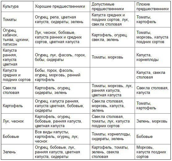 ТАБЛИЦА ЧЕРЕДОВАНИЯ ПОСЕВОВ ОВОЩЕЙ В ОГОРОДЕ. Добрым хозяевам на заметку.Из севооборота овощей можно извлечь выгоду. Это и защита растений от вредителей и болезней, и сохранение плодородия почвы. Но недостаточно просто менять овощи местами от сезона к сезону, нужно учитывать, какие предшественники наиболее полезны для каждой овощной культуры. При севообороте соблюдаем правило: не сеять одну и ту же культуру второй год на старое место. Это относится и к представителям одного и того же семейства культур. Так, например, нельзя высаживать томаты, баклажаны после картофеля (все они относятся к семейству пасленовых); морковку после укропа (семейство зонтичные); репу после капусты (семейство крестоцветные) и т. д. При выращивании овощей из одного семейства, в почве скапливаются вредители и возбудители болезней, поражающие именно это семейство. Чтобы не давать им возможности навредить на следующий год, требуется менять посадки местами. Нужно также чередовать посадку овощей на своем участке, чтобы питательные вещества в почве использовались более рационально. ![]() |