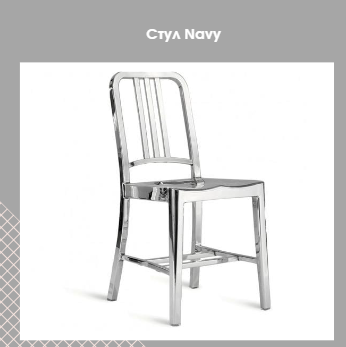 Navy: стул, который прошел путь от флота Америки до сериала "Доктор Хаус"Как простой алюминиевый стул стал, пожалуй, самым популярным стулом США? Представляем вашему вниманию краткую историю стула Navy. Информационный спонсор - "Mebelino", эксперт в мире производства мебели. Создаем эксклюзивные шкафы-купе на заказ с 2008 года. Собственное производство со стекольным цехом позволяет реализовать практически любую дизайнерскую фантазию. Гарантия до 25 лет, рассрочка 0%. Рождение легендыИстория стула Navy началась в 1944 году, когда некий Уилтон Карлайл Динджес основал компанию по производству оборудования Emeco. Вскоре он получил крупный государственный заказ на стул, который выдерживал бы воздействие воды, морской соли и… темперамента моряков. Вот почему он известен как Navy (в переводе с англ. "флот"), хотя Emeco просто присвоила продукту номер 1006. "Создавайте легкие, но прочные стулья, которые прослужат вам всю жизнь" - таков был принцип компании. Алюминий был очевидным выбором.