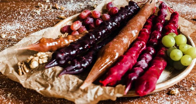 Знакомьтесь — чурчхела: польза, как помогаетЗдесь речь пойдет о мало кому известном продукте. Его полезных свойствах и о том, как при помощи него соблюдать диету. Это — чурчхела. Она вкусная и питательная. А калорийность чурчхела имеет достаточно высокую - 390 ккал. Что этоЧурчхела — это традиционное грузинское лакомство. Оно представляет собой сладкий вареный кондитерский продукт. Он изготавливается, при обмакивании цельных орехов (чаще всего грецких вместе с арахисом) в густой вареной массе. Последнюю приготавливают из сахара, виноградного сока (или сиропа) и муки. После обмакивания масса застывает и получается характерная форма, которая подобна цилиндру. Чурчхелу часто подают на праздниках. Это популярный вариант сладкого угощения в грузинской кухне. А узнать подробнее про его состав можно на сайте www.tablicakalorijnosti.ru/