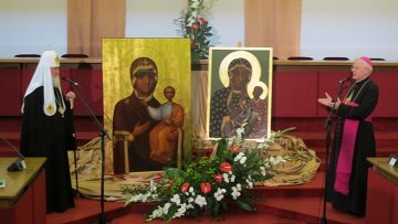Церемония обмена иконами произошла после встречи патриарха Кирилла с президиумом Конференции епископата Польши, на которой обсуждались вопросы диалога двух церквей.