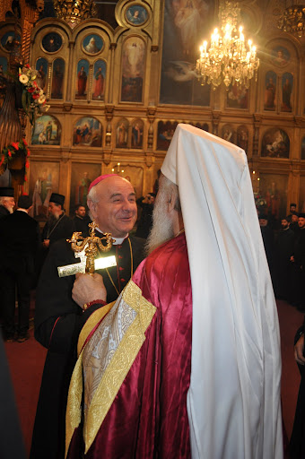 Католический епископ приветствует Патриарха в православном храме Рождества Пресвятой Богородицы