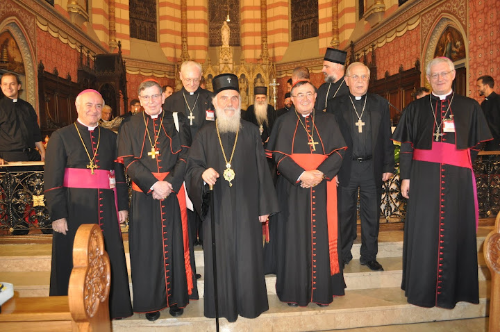 Фото на память: Патриарх Ириней, слева от него – кардинал Кох, справа – кардинал Пулич